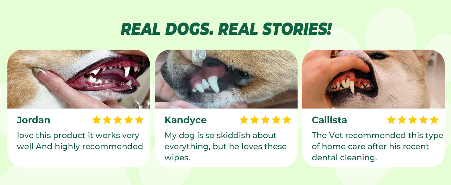 - “I’ve been using these wipes for a month, and I can already see a difference in my dog’s breath and overall dental health. Highly recommend!” - Sarah M.